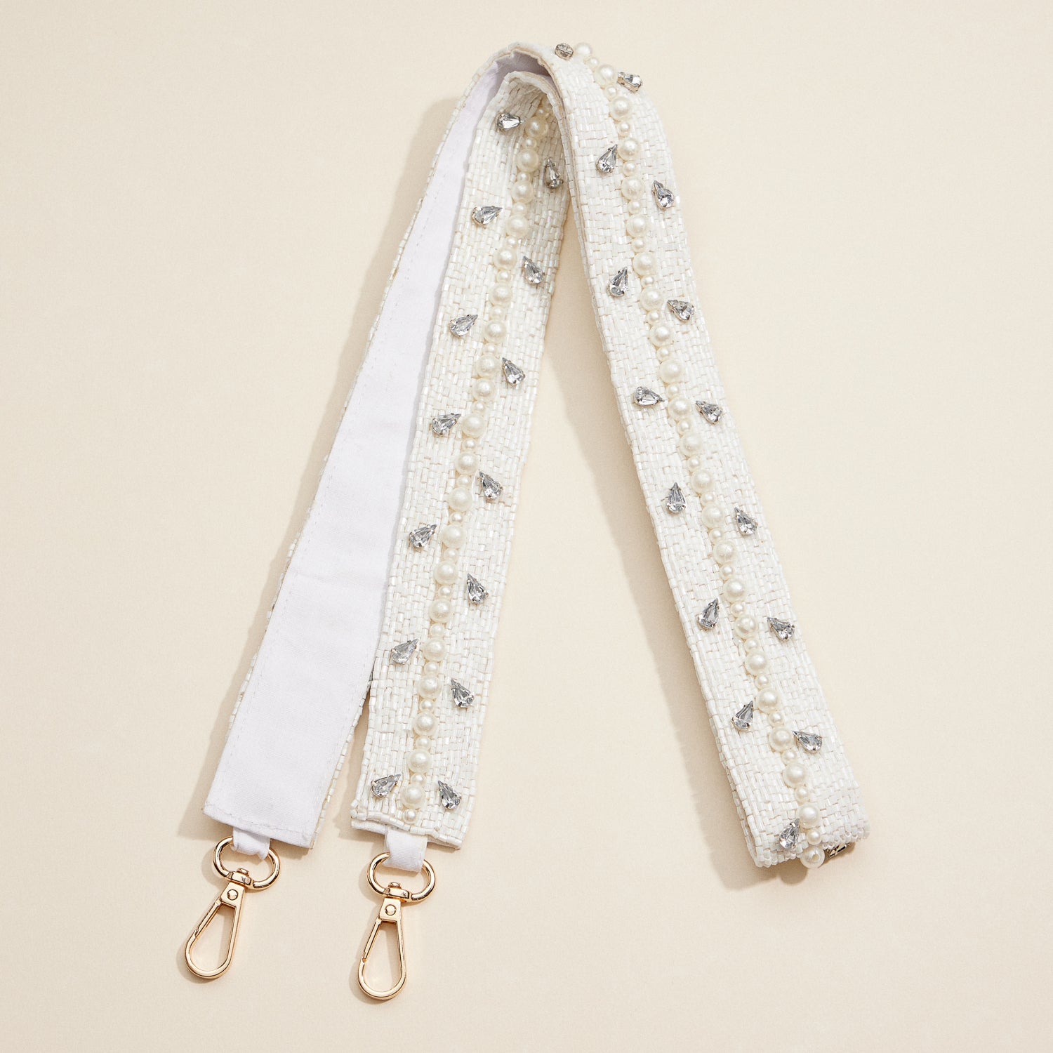 Elevate your handbag with this Pearl & Crystal Beaded Bag Strap, designed to add a touch of sophistication and glamour to any purse or tote. Featuring a central row of lustrous pearls and sparkling crystal embellishments, this strap brings timeless elegance to your everyday style. The durable construction and gold-tone lobster clasps make it easy to attach to your favorite bag, instantly upgrading your look for special occasions or daily wear.