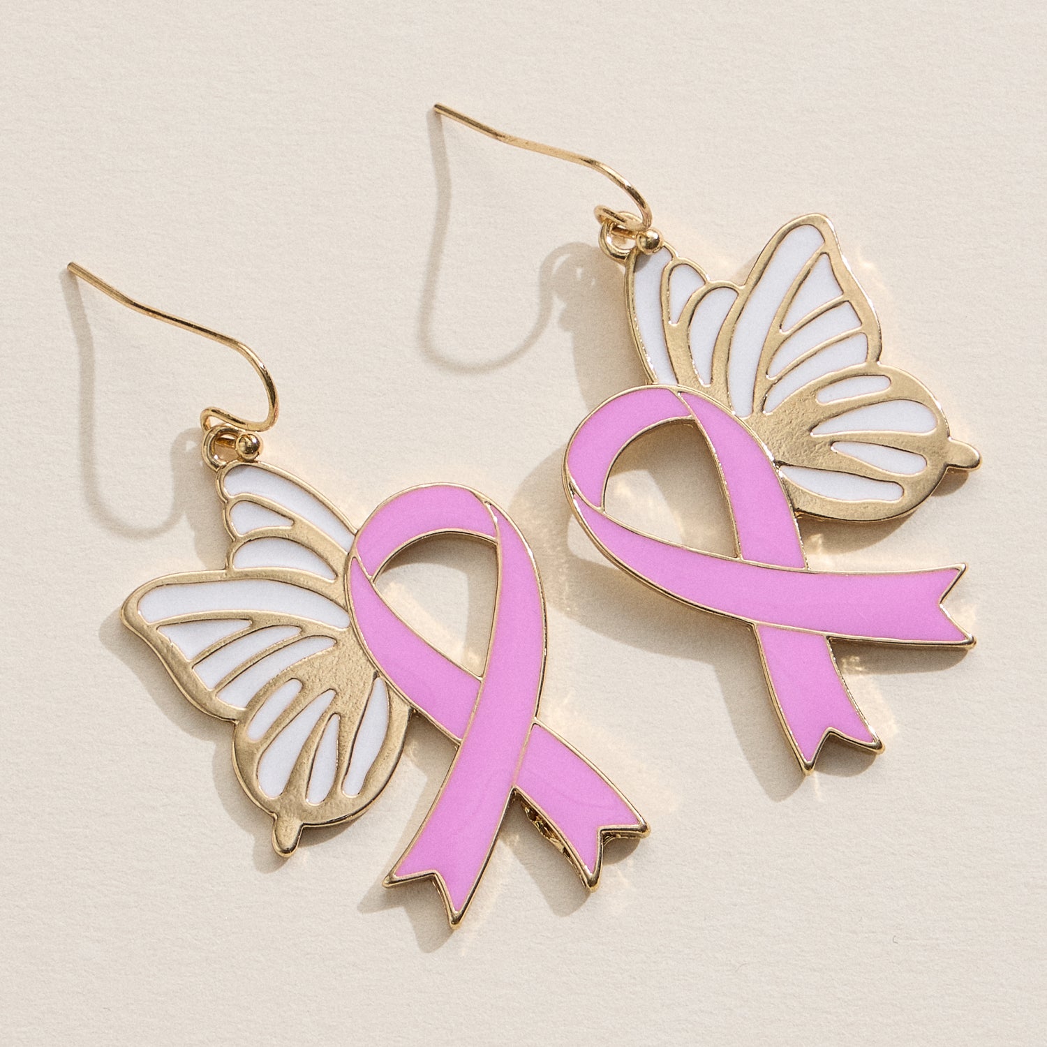 Celebrate strength and transformation with these pink ribbon butterfly earrings. Made with high-quality enamel and gold-tone detailing, these dangle earrings combine the elegance of a butterfly with the powerful pink ribbon symbol. Ideal for awareness campaigns, gifts, or personal inspiration.