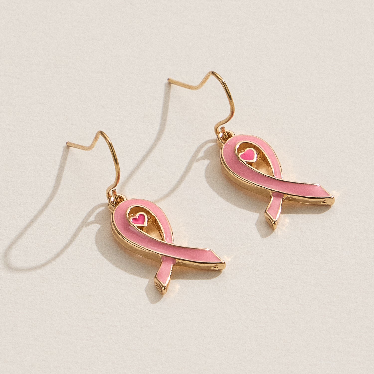 Show your support in style with these pink ribbon earrings, crafted from durable epoxy and accented with a gold-tone finish. Featuring a delicate heart cutout, they are lightweight, symbolic, and perfect for awareness events or everyday wear. Ideal for gifting or fundraising.