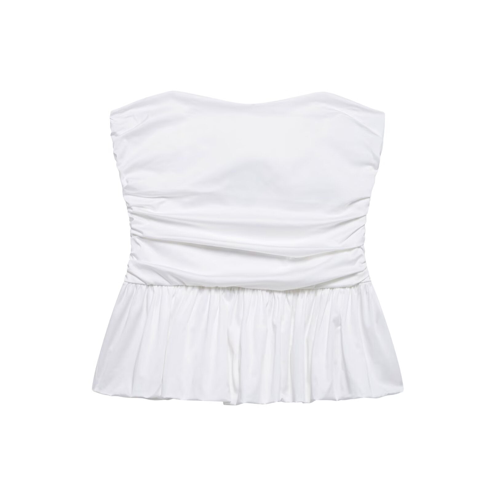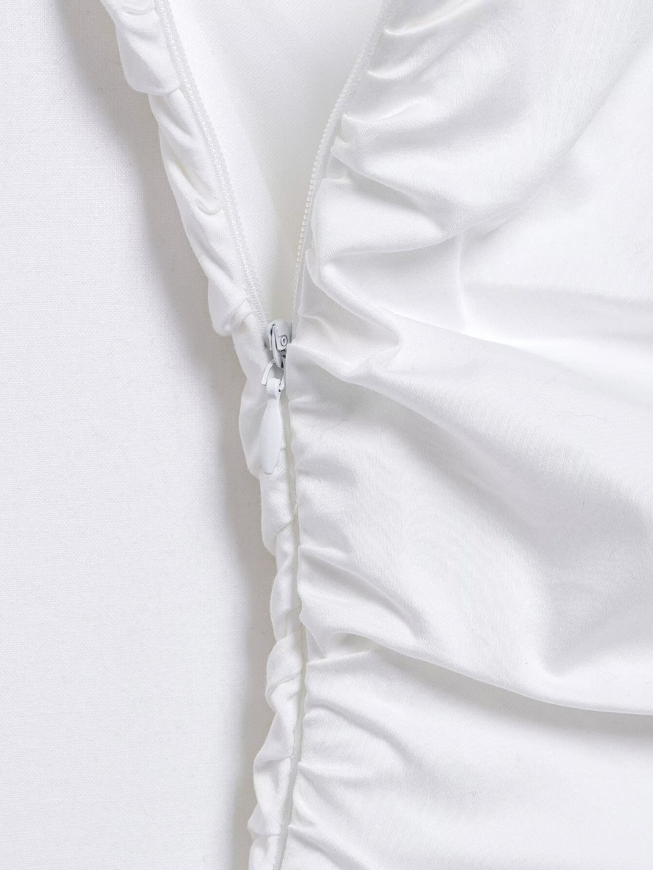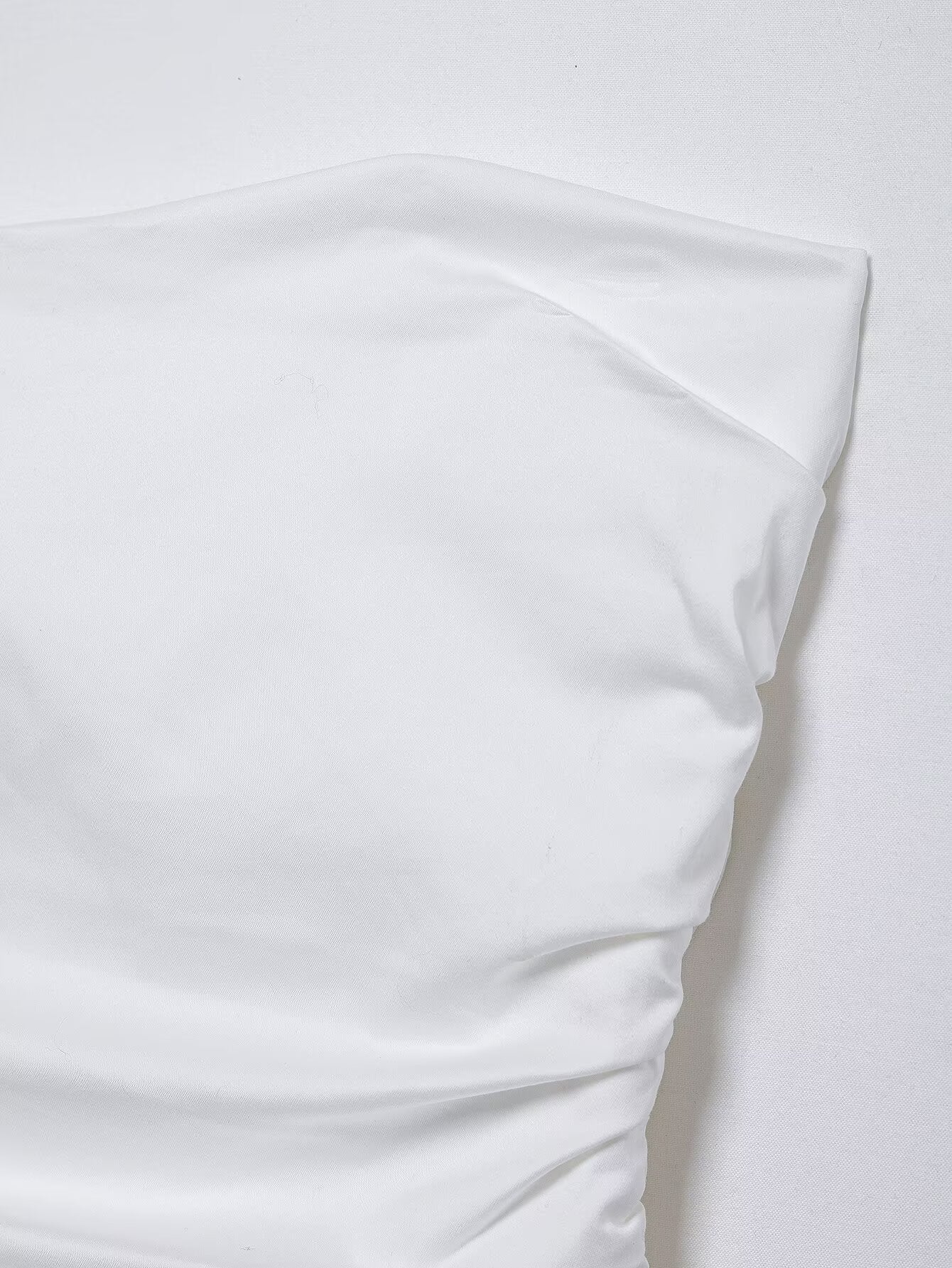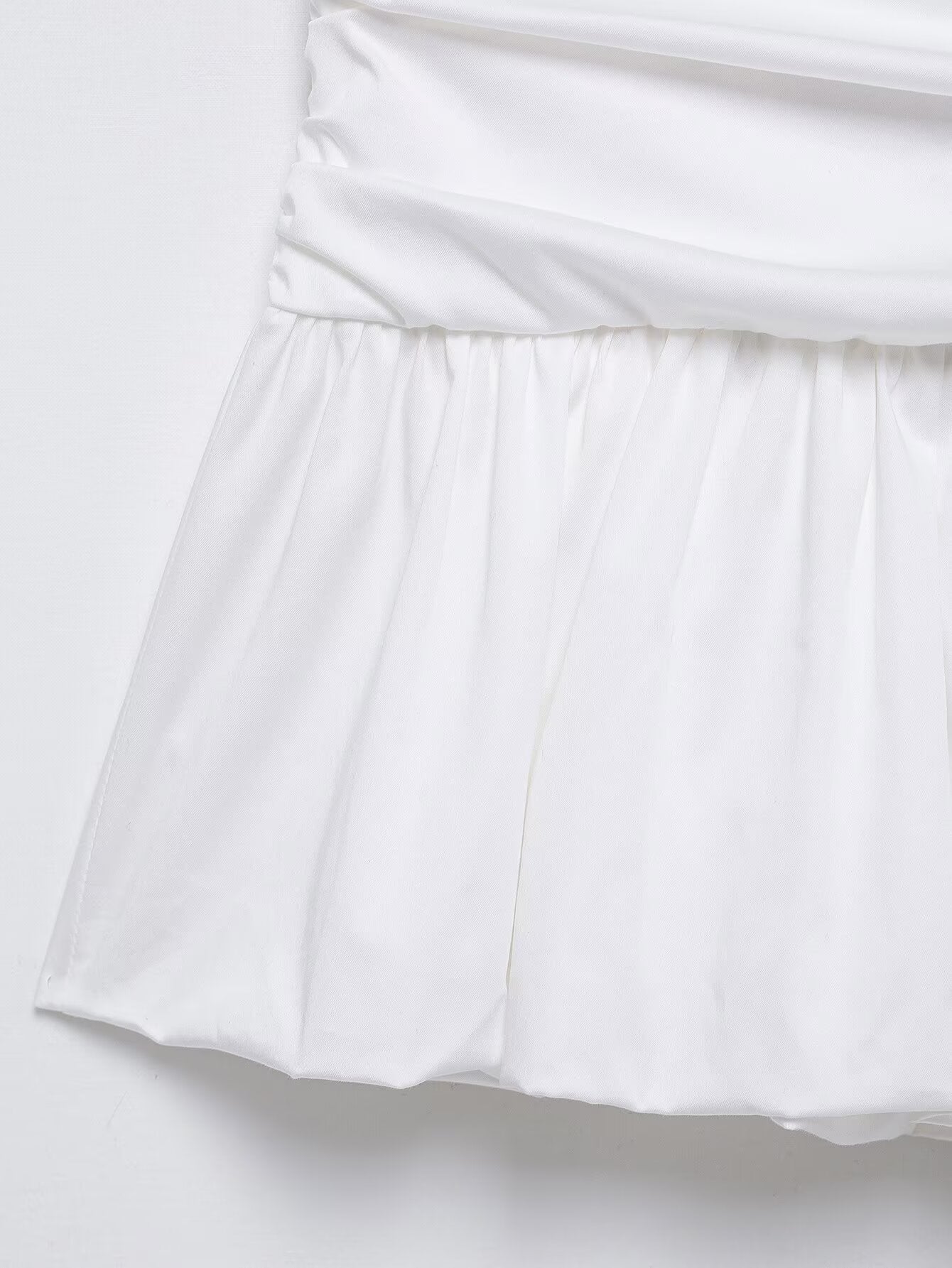 This chic set includes a pleated wavy poplin tube top paired with a high-waist pleated midi skirt. The solid color and elegant design make it suitable for various occasions, from casual outings to more formal events.