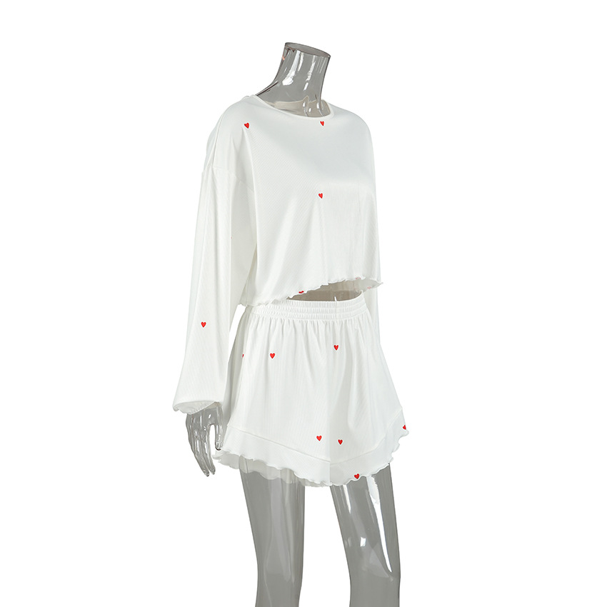 Add a touch of charm to your loungewear collection with this knitted two-piece pajama set. Featuring a heart print design, the set includes a long-sleeve top and matching shorts, offering both comfort and style for your home relaxation during the spring season.