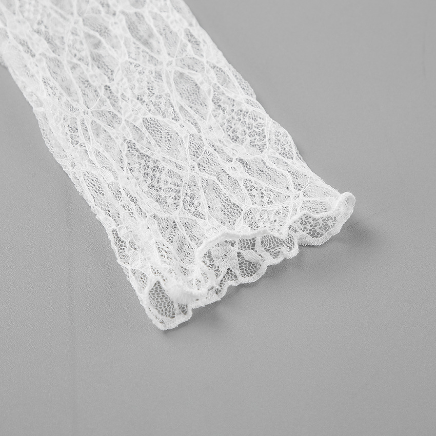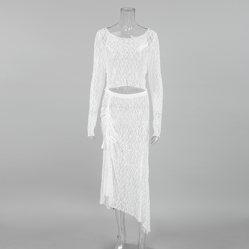 Channel effortless elegance with this sheer two-piece set, featuring a fitted crop top and matching long skirt. The lightweight, see-through fabric adds a hint of allure while maintaining a refined silhouette. Perfect for beach cover-ups, summer evenings, or elevated resort style.
