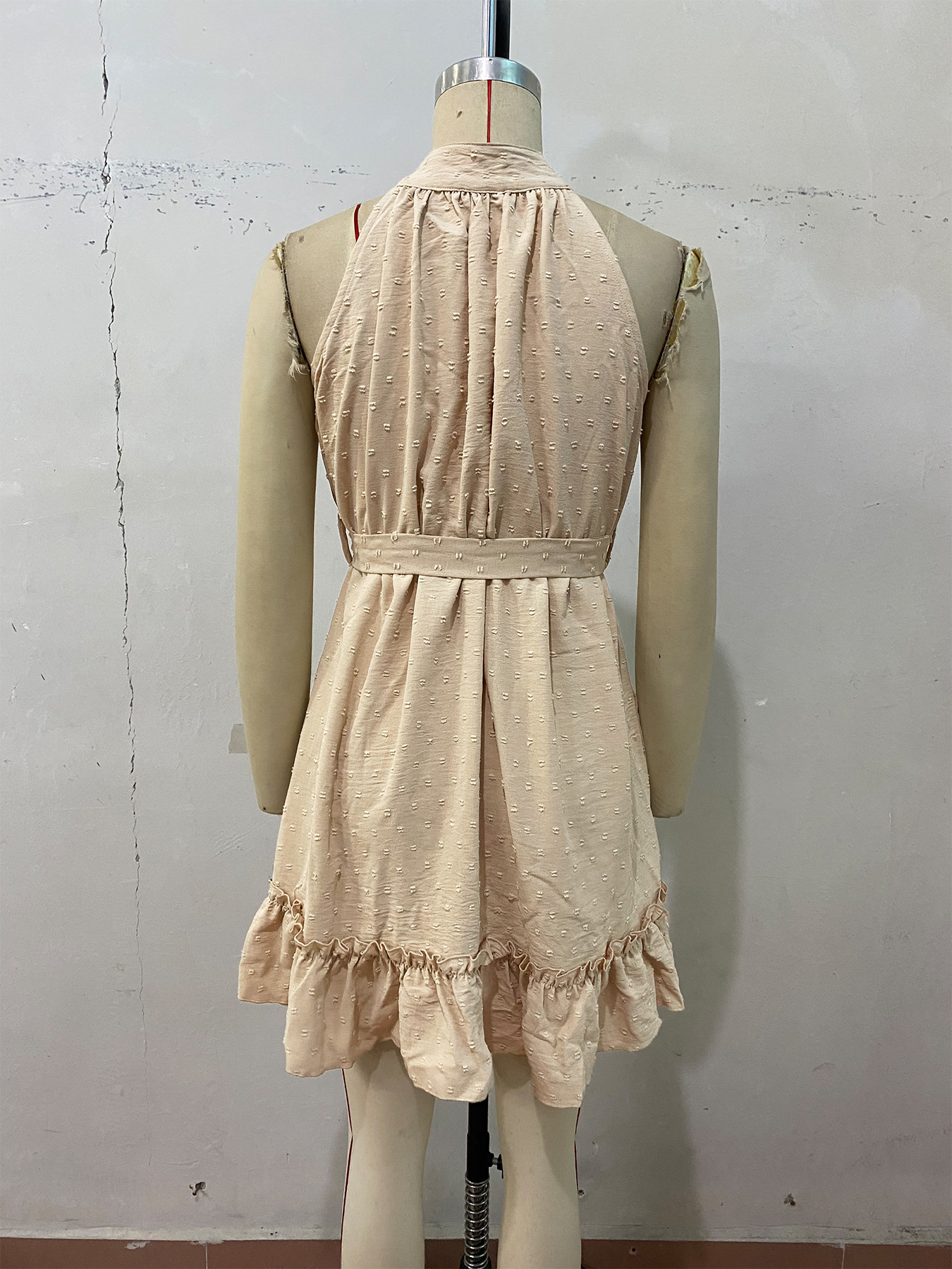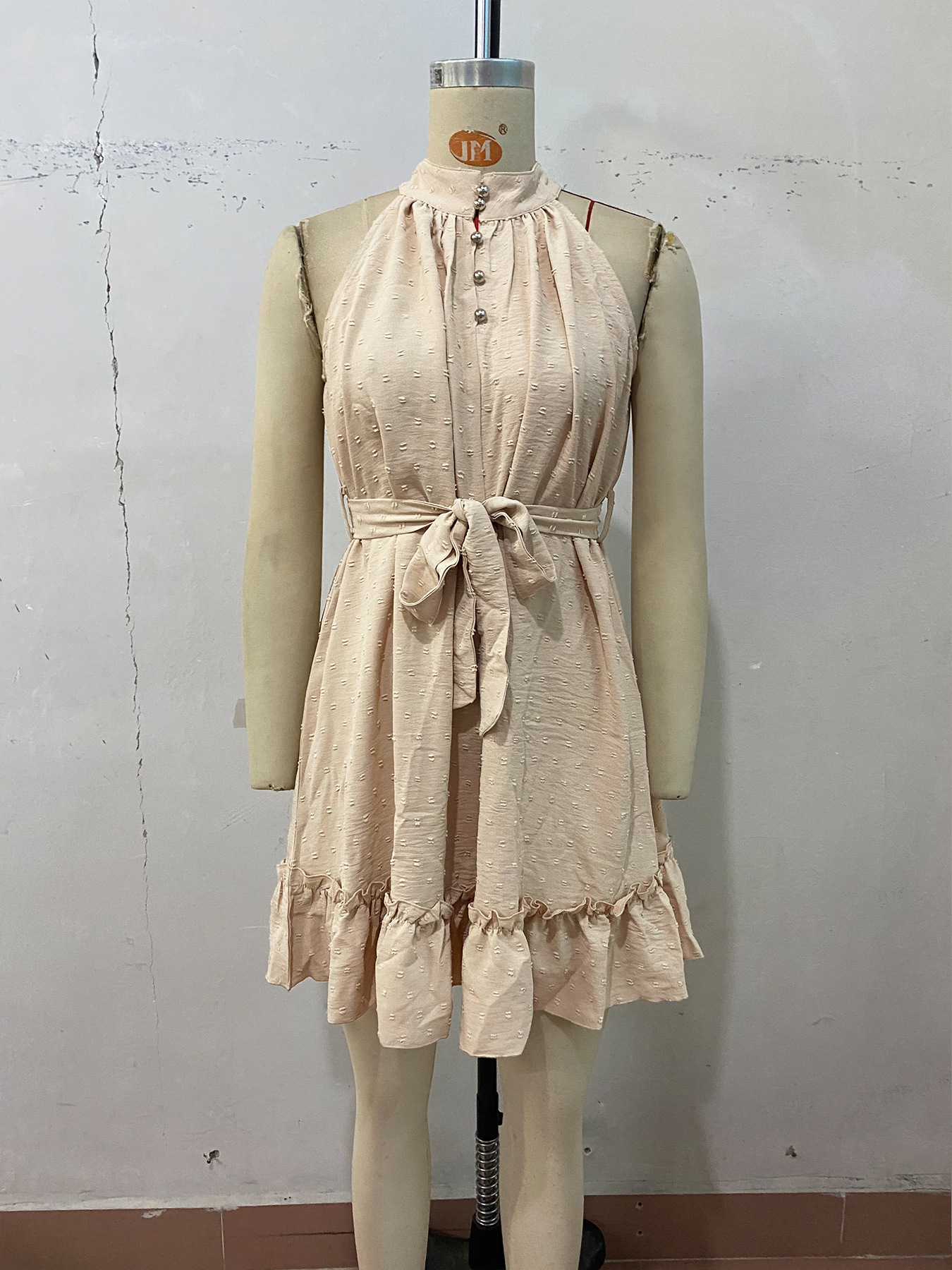Step into elegance with this stunning lace dress, featuring a sophisticated half turtleneck and a stylish halterneck design. Perfect for summer occasions, this dress offers a chic and breathable fit while highlighting your silhouette with its delicate lace details. Whether you're attending a special event or enjoying a night out, this dress brings effortless charm and sophistication.