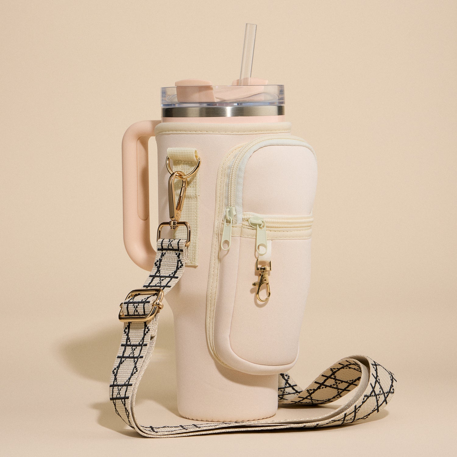Stay hands-free and hydrated in style with this neoprene tumbler crossbody bag. Designed to fit your favorite tumbler snugly, it features a zippered pocket, built-in straw hole, and an adjustable shoulder strap for comfortable wear on the go. Whether you're running errands, heading to the gym, or out for a walk, this bag keeps your drink secure and your essentials within reach.
