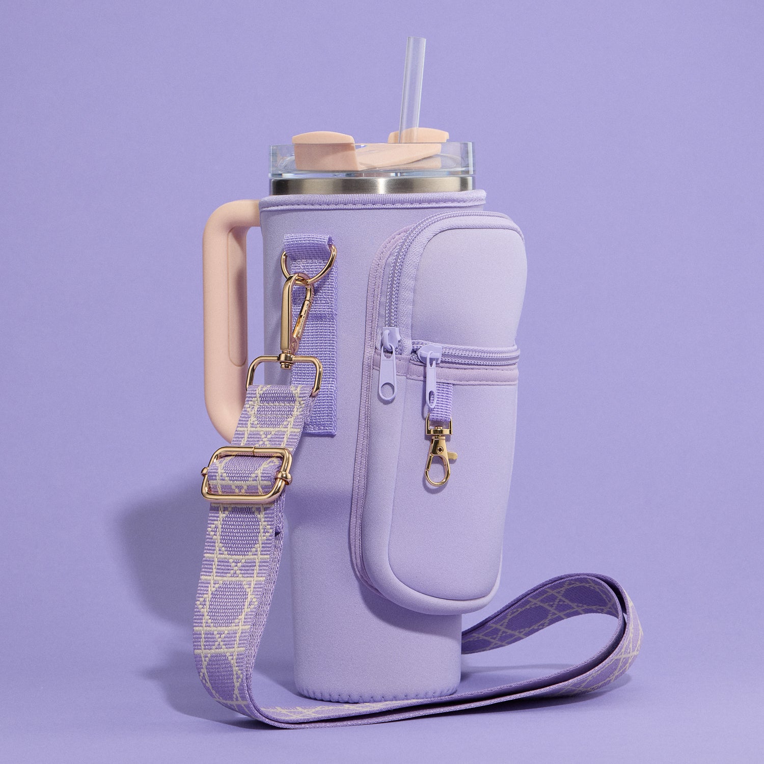 Crafted from durable neoprene in trendy color options, this tumbler holder is lightweight, water-resistant, and easy to clean. The detachable, patterned shoulder strap adds a pop of personality while allowing you to customize your fit.